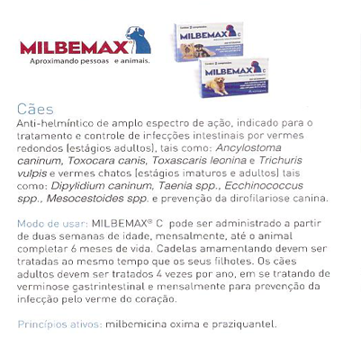 Parasiticidas para o controle de vermes gastrintestinais, pulgas, carrapatos e dirofilariose.